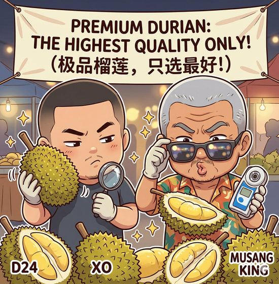 Dari Ayah "Achya" kepada saya, kami hanya memilih durian yang matang secara semulajadi. Setiap ulasan menceritakan dedikasi kami terhadap kualiti sejak dahulu lagi. 从父亲“亚赤”到我,我们始终坚持只选自然成熟的精品。每一颗榴莲都承载着我们家族多年的口碑与对品质的固执坚持。 -